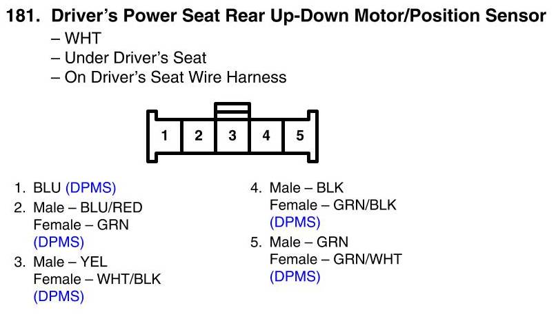 View 181 - Driver's Power Seat Rear Up-Down Motor/Position Sensor Connector View