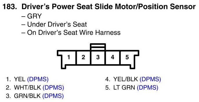 View 183 - Driver's Power Seat Slide Motor/Position Sensor Connector View