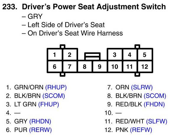 View 233 - Driver's Power Seat Adjustment Switch Connector View