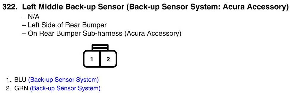 View 322 - Left Middle Back-Up Sensor (Back-up Sensor System: Acura Accessory) Connector View