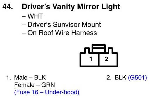 View 44 - Driver's Vanity Mirror Light Connector View