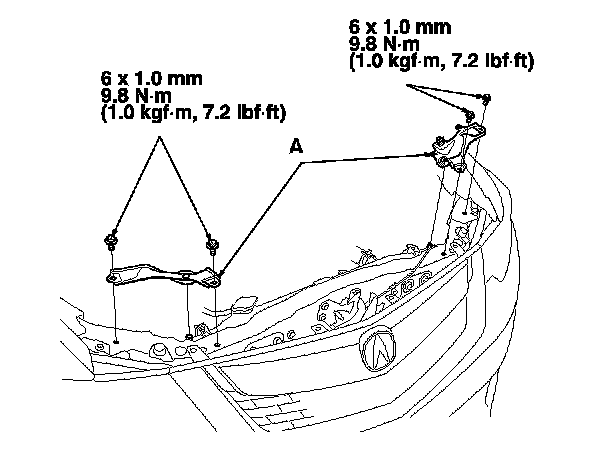 4. Remove the bolts and the radiator upper mount brackets (A).