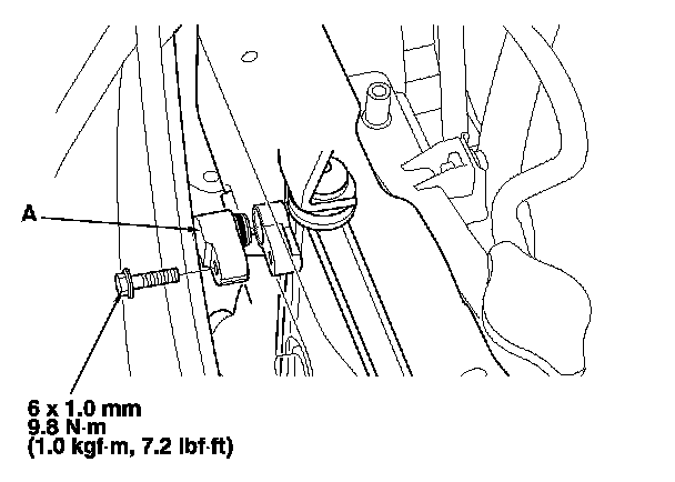 5. Remove the bolt, then disconnect the discharge hose (A) from the A/C condenser.