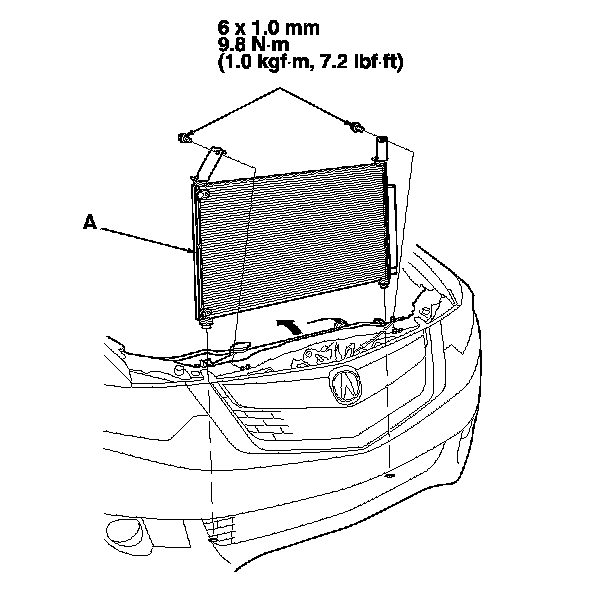 7. Install the A/C condenser in the reverse order of removal, and note these items: