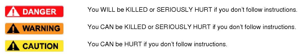 - Safety Messages -preceded by a safety alert symbol and one of three signal words, DANGER, WARNING, or CAUTION.