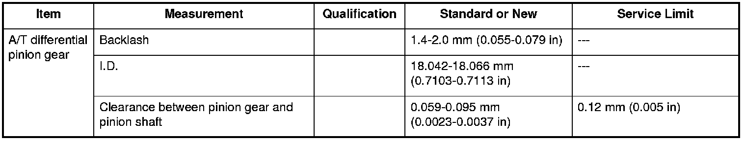 A/T Differential Pinion Gear Specifications