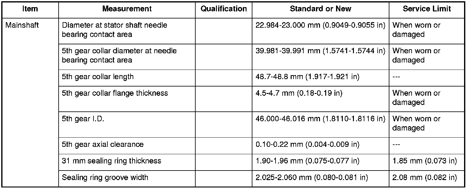 Mainshaft Specifications