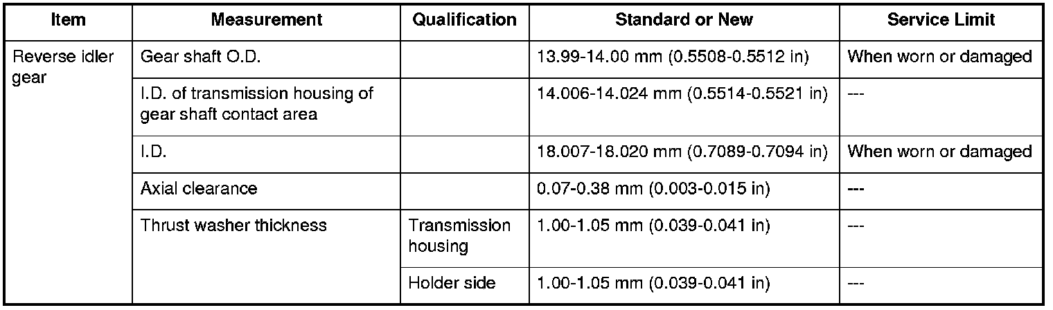 Reverse Idler Gear Specifications