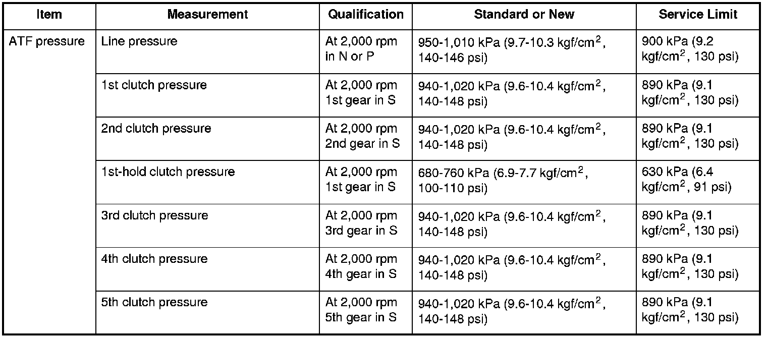 ATF pressure Specifications