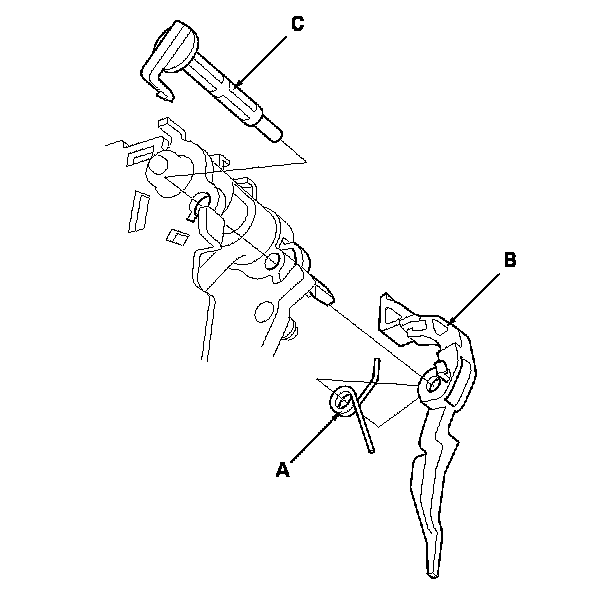 8. Install the shift lock release shaft (C) in the shift lever, and install the shift lock release and the release spring on the release shaft end.