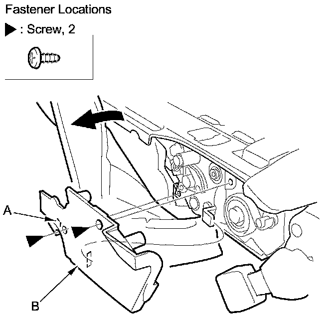 5. Remove the screw and release the hook (A), then remove the outer latch cover (B).