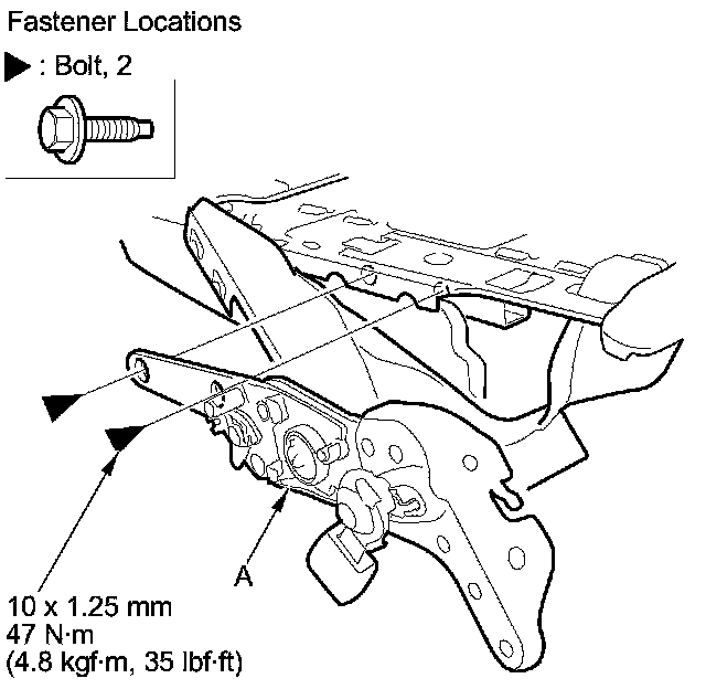 8. Remove the bolts, then remove the latch (A).