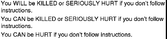 - Safety Messages -preceded by a safety alert symbol and one of three signal words, DANGER, WARNING, or CAUTION.
