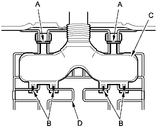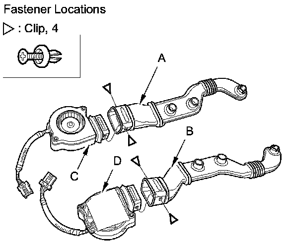 4. Remove the clips, then separate the duct (A, B) and the blower motor (C, D).