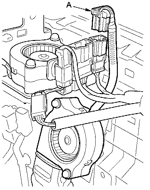3. Disconnect the blower motor connector (A).