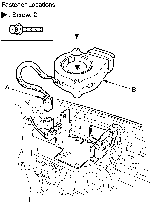 3. Disconnect the blower motor connector (A), and remove the screws, then remove the blower motor (B) from the seat cushion front duct.