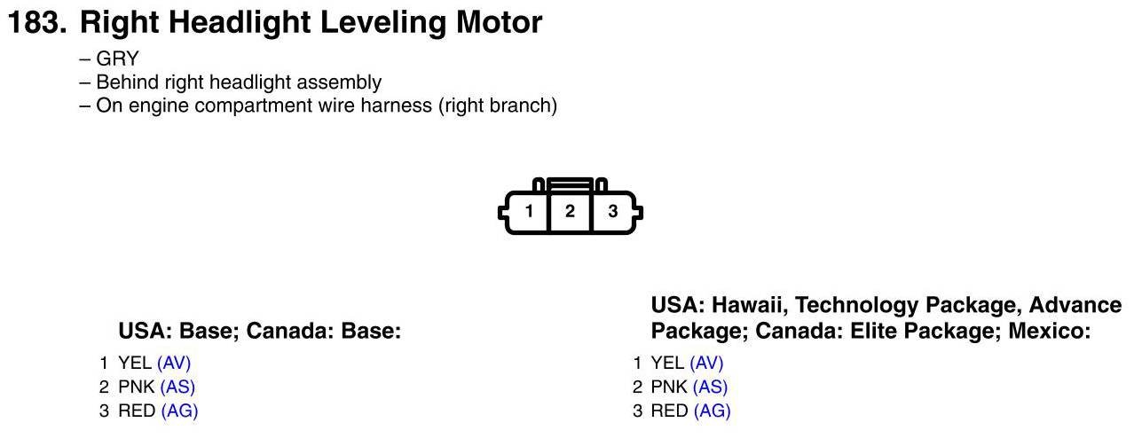 View 183 - Right Headlight Leveling Motor Connector View