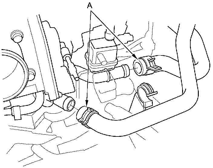 49. Disconnect the ATF cooler hoses (A) from the transmission, then plug the ATF cooler hoses and the lines.