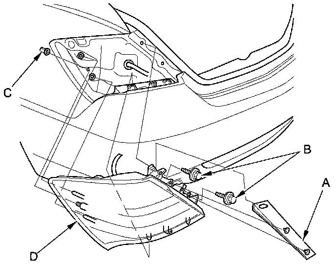 2. Remove the two bolts (B) from the taillight.