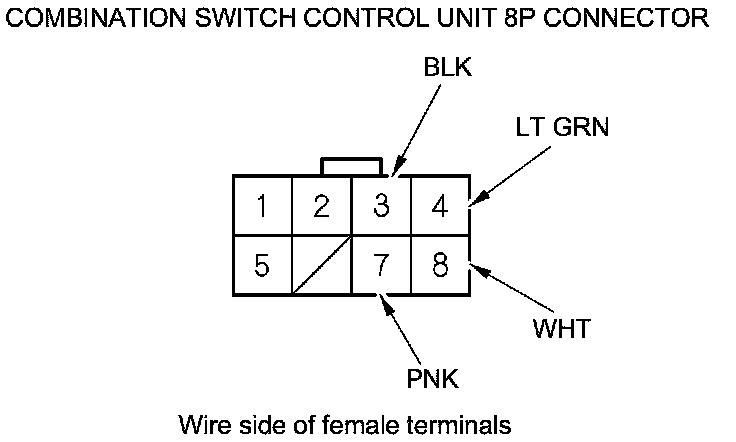 2. Disconnect the 8P connector from the wiper/washer switch (combination switch control unit).