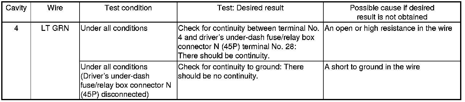 4. Reconnect the connector to the wiper/washer switch, and do the following input tests.