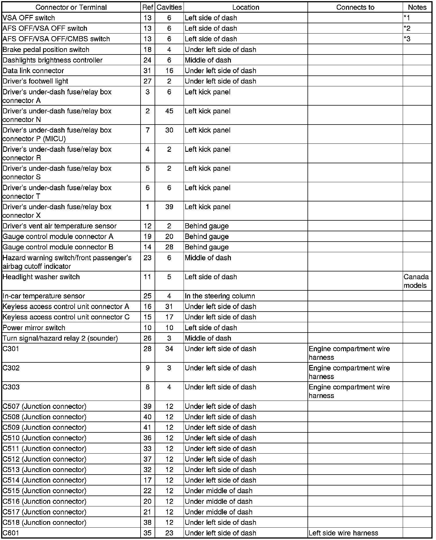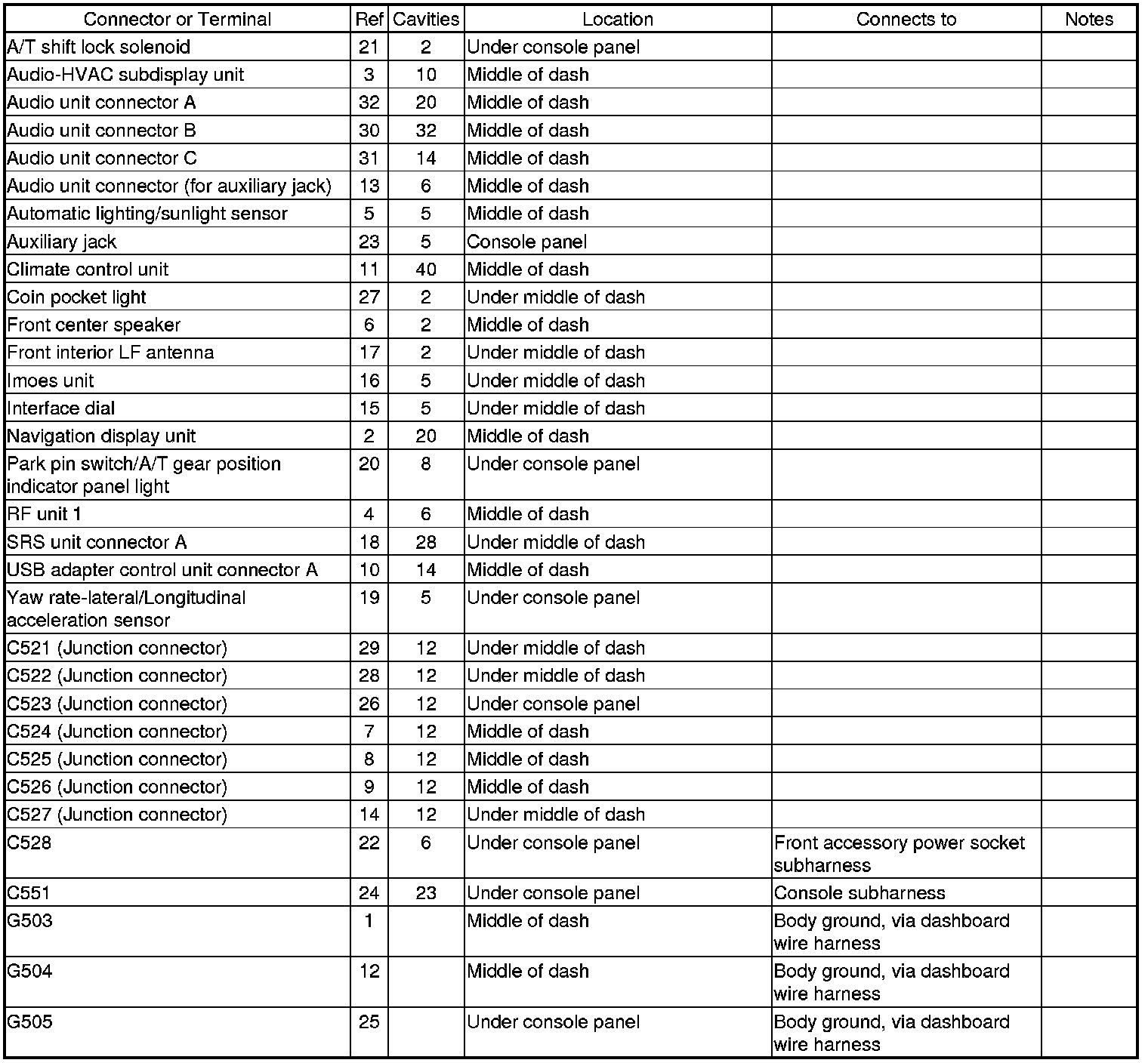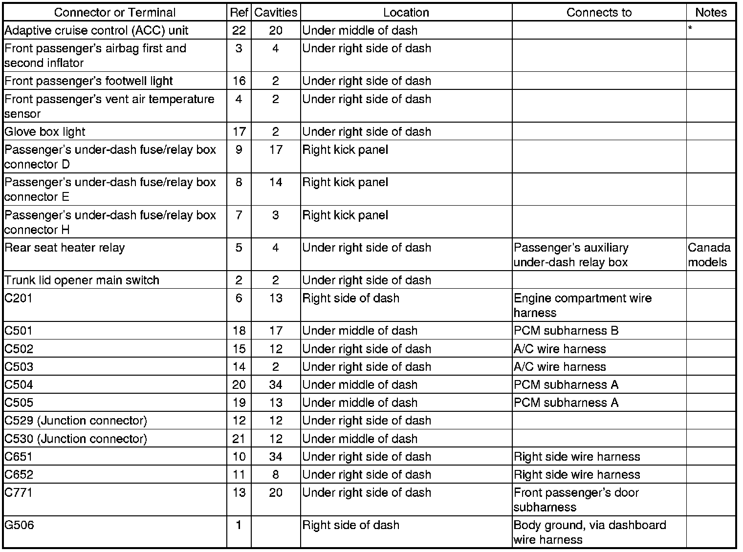 Connector and Harness Locations