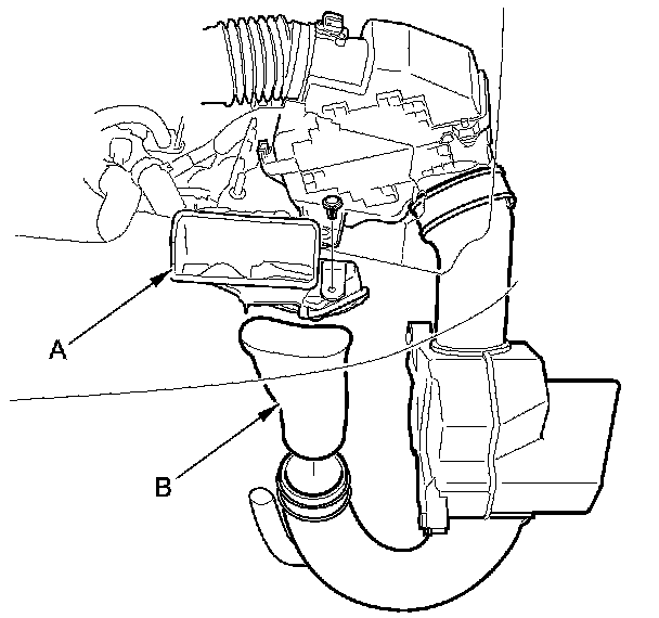 3. Remove the intake air duct (A) and the tube (B).