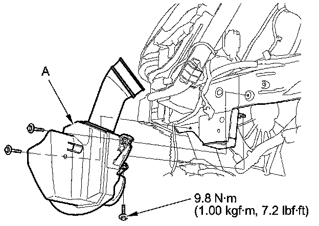4. Remove the bolts and the intake air resonator (A).