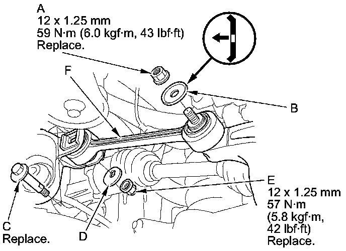- First install all of the components, and lightly tighten the bolts and nuts, then raise the suspension to load it with the vehicle's weight before fully tightening to the specified torque.
