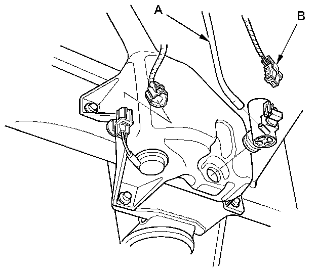 2. Disconnect the washer tube (A) and washer motor 2P connector (B).