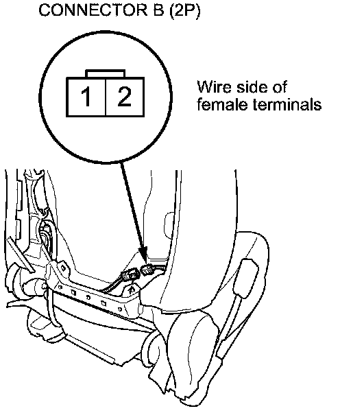 6. Check for continuity between seat heater connector B (2P) terminals No. 1 and No. 2. There should be continuity.