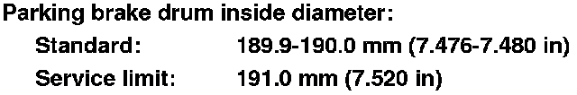 9. If the inside diameter of the parking brake drum is more than service limit, replace the brake disc/drum.