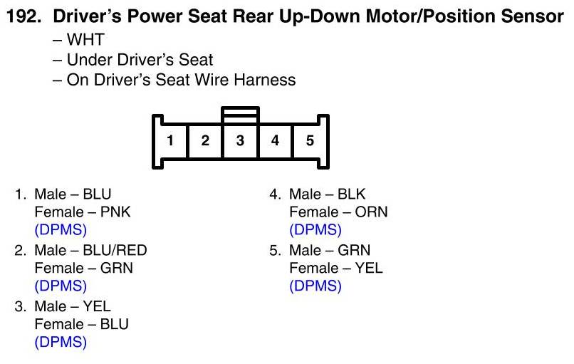 View 192 - Driver's Power Seat Rear Up-Down Motor/Position Sensor Connector View