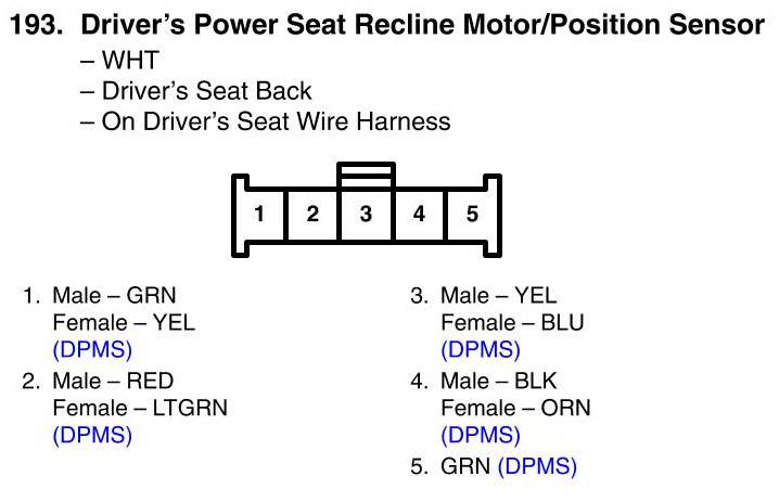 View 193 - Driver's Power Seat Recline Motor/Position Sensor Connector View