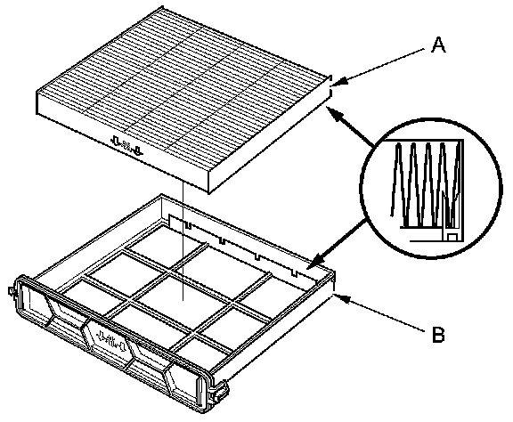 3. Remove the filter (A) from the housing (B), and replace the filter.