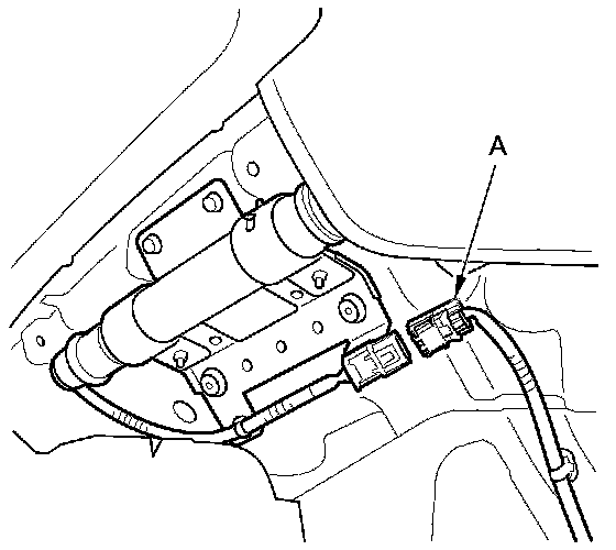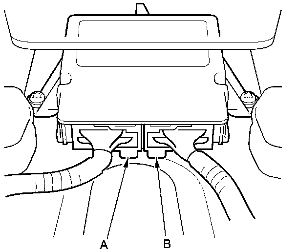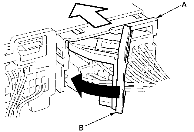 To reconnect the connector (A), push in on the connector. As the connector is pressed in, the lever (B) moves to the locked position.