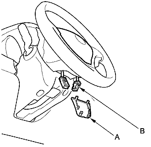 2. Remove the access panel (A) from the steering wheel, then disconnect the cable reel 4P connector (B) from the driver's airbag 4P connector.