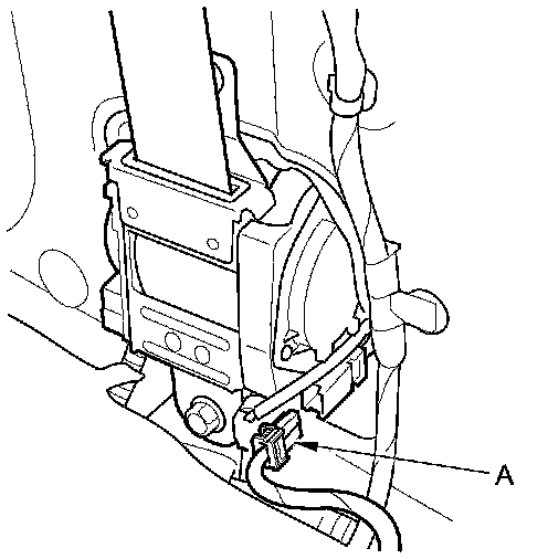 4. Disconnect the dashboard wire harness 4P connector (A) from the front passenger's airbag 4P connector.