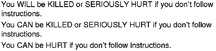 - Safety Messages -preceded by a safety alert symbol and one of three signal words, DANGER, WARNING, or CAUTION.