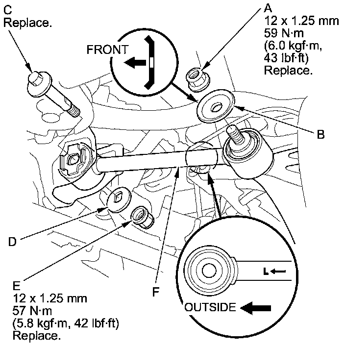 - First install all of the components, and lightly tighten the bolts and the nuts, then raise the suspension to load it with the vehicle's weight before fully tightening to the specified torque.