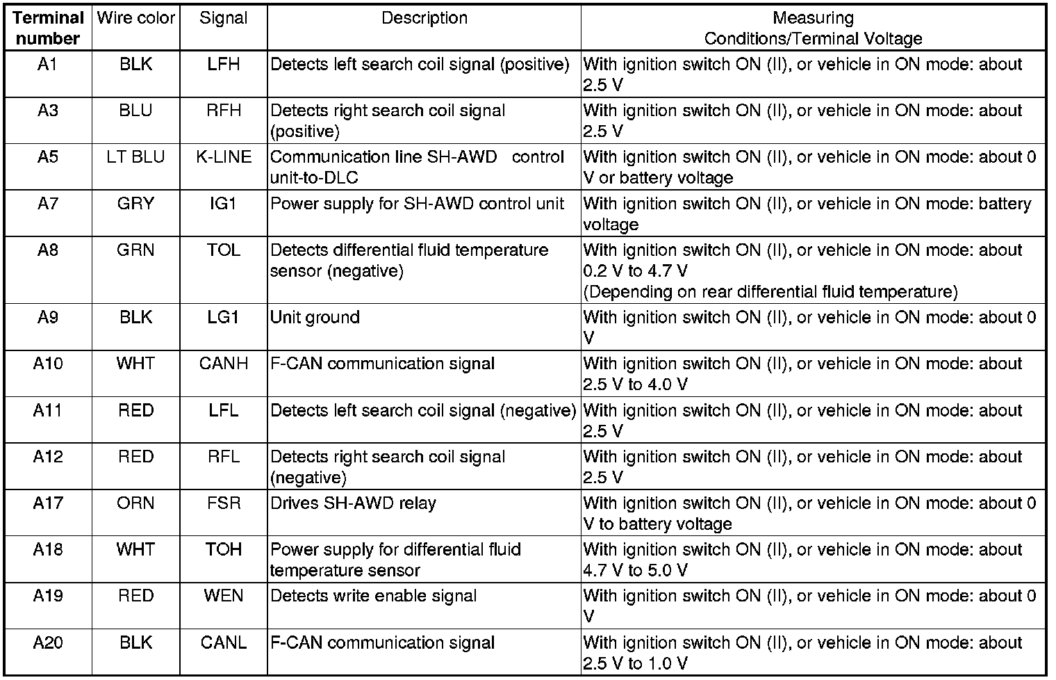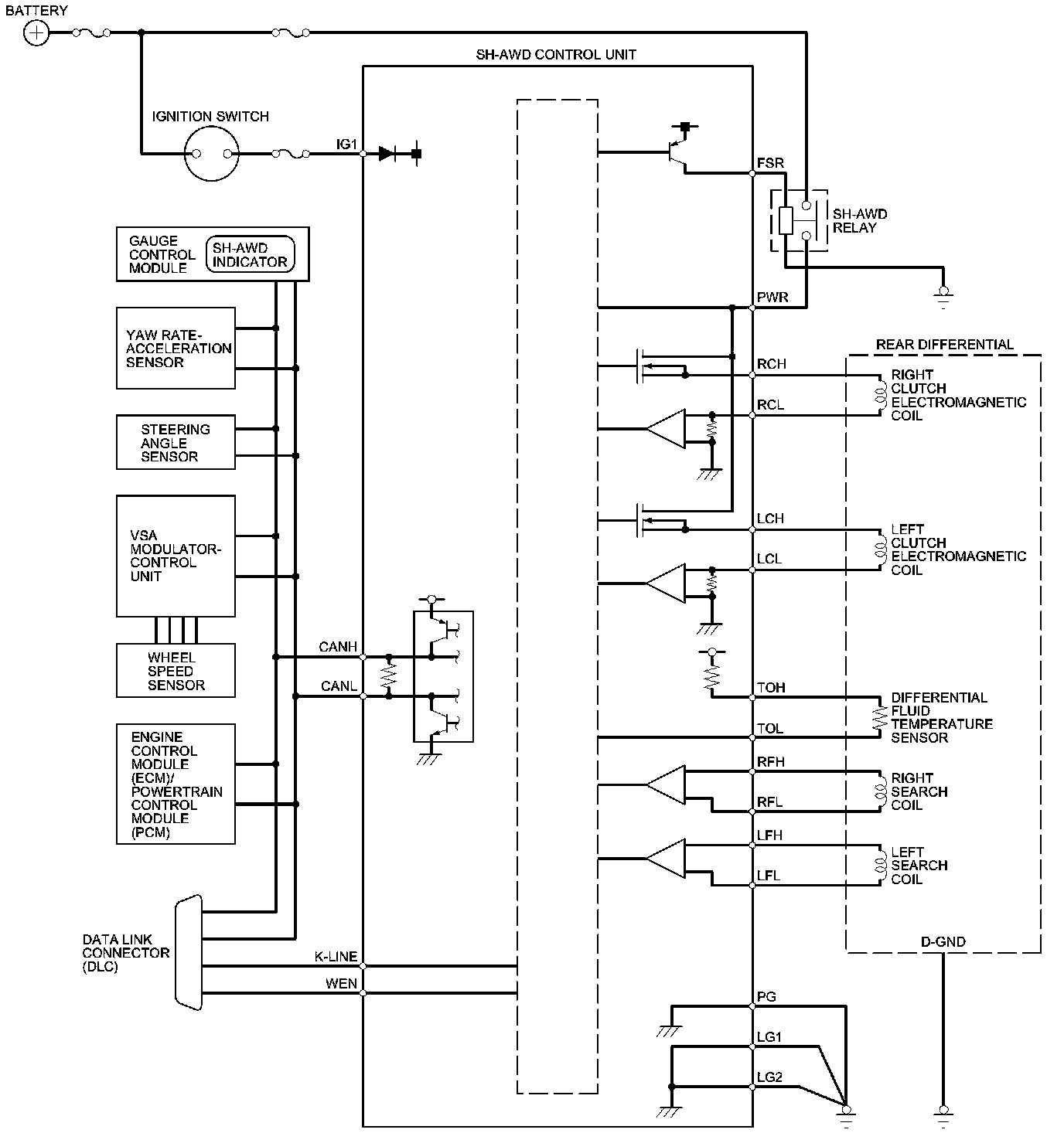 SH-AWD Control Unit Inputs and Outputs