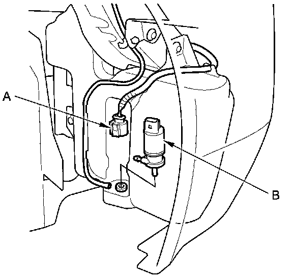 5. Install the washer reservoir in the reverse order of removal. Check the washer motor operation.