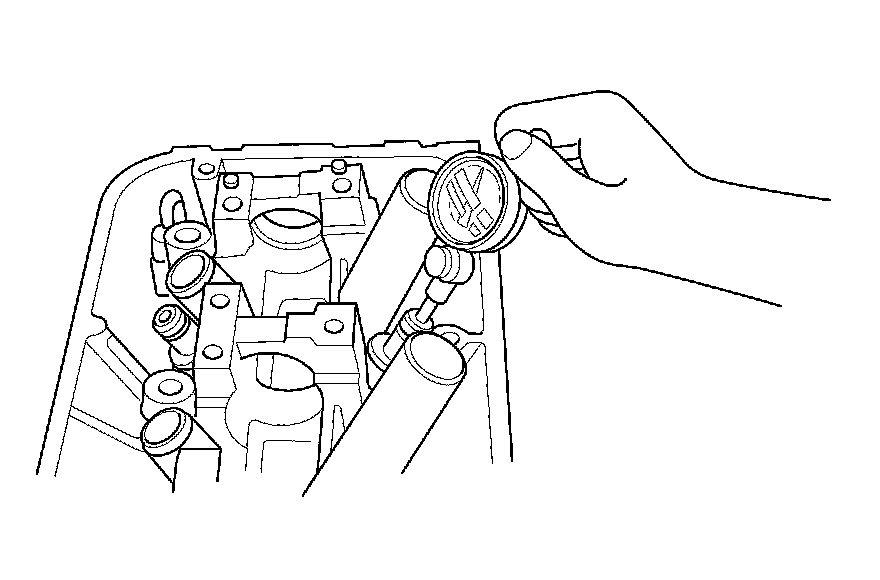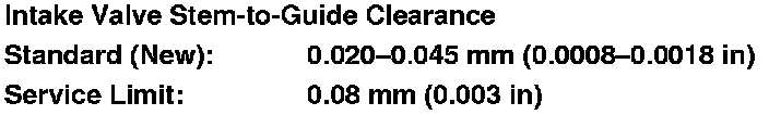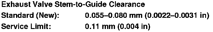 2. Subtract the O.D. of the valve stem, measured with a micrometer, from the I.D. of the valve guide, measured with an inside micrometer or a ball gauge. Take the measurements in three places along the valve stem and three places inside the valve guide. The difference between the largest guide measurement and the smallest stem measurement should not exceed the service limit.