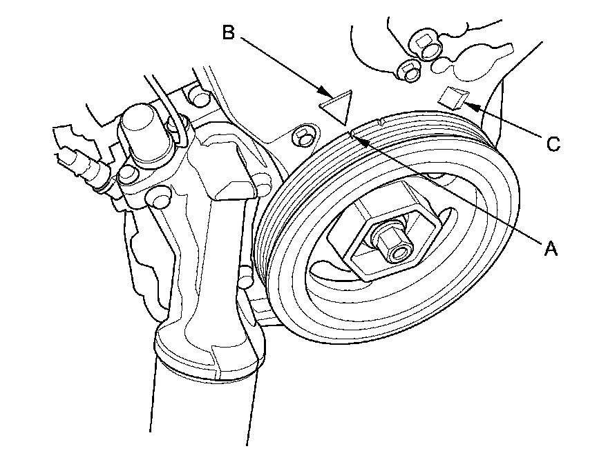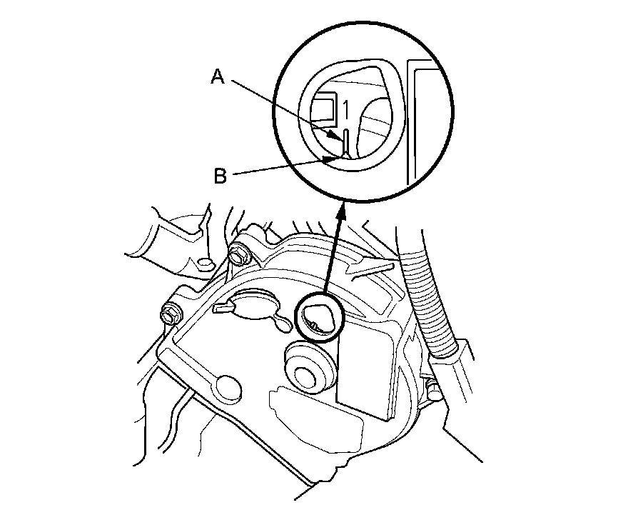2. Turn the crankshaft so its white mark (A) lines up with the pointer (B).
