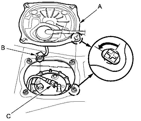 5. Disconnect the quick-connect fitting (C) from the fuel tank unit.