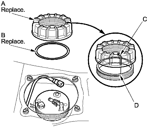 NOTE: To avoid a fuel leak, check the base gasket, visually or by hand, to make sure it is not pinched.