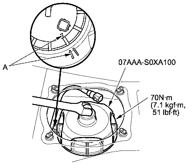 2. Transfer the base gasket (A) from the fuel tank unit to the fuel tank.