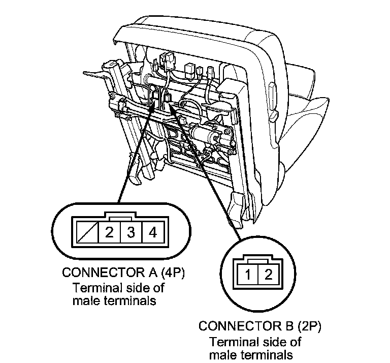 2. Disconnect the connector A (4P) and connector B (2P) from the seat heaters.
