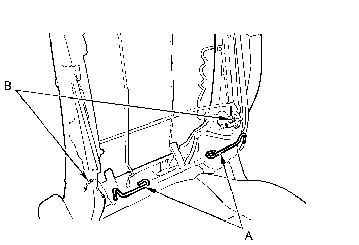 1. While pulling the lower part of the lumbar support to one side of the seat back frame, release it from the lower wire (B).