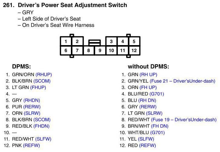 View 261 - Driver's Power Seat Adjustment Switch Connector View